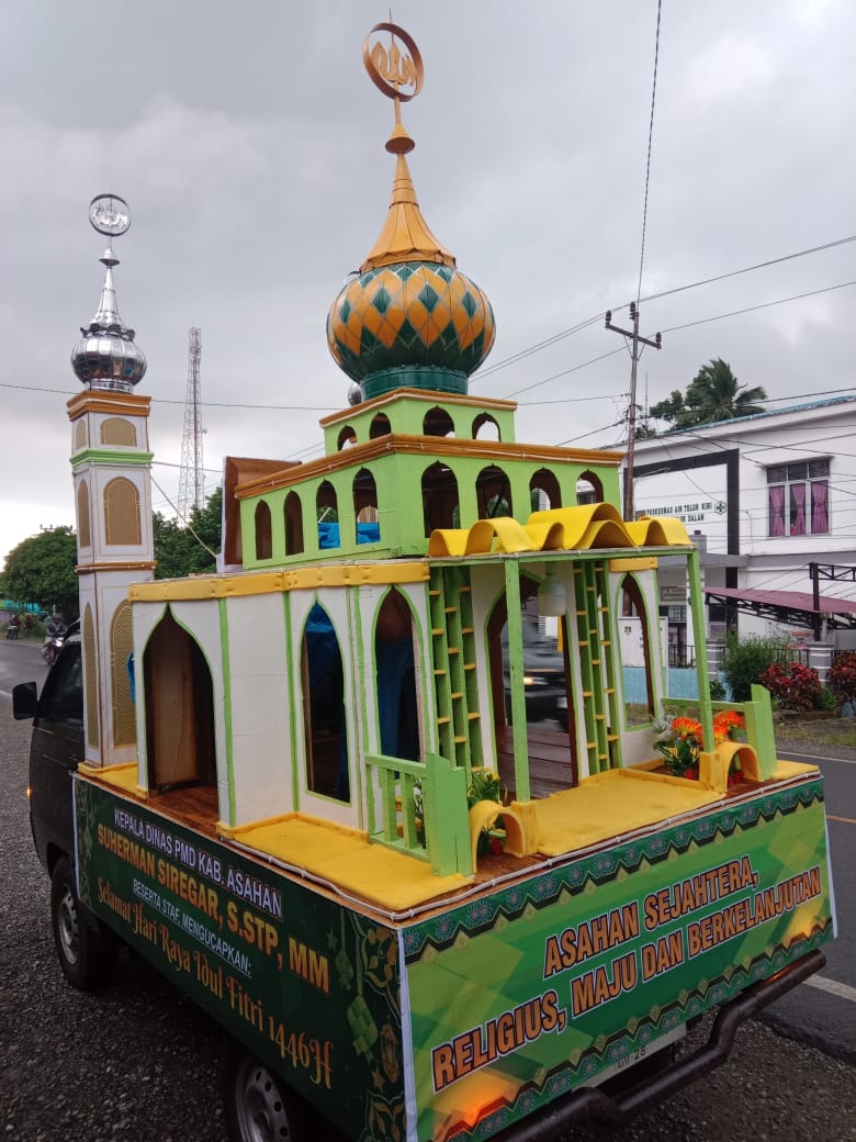 Dinas PMD Kab. Asahan mengikuti Pawai Taaruf sekaligus lomba mobil hias dalam rangka merayakan malam takbiran hari raya Idul Fitri 1446 Hijriah yang diselenggarakan oleh Pemerintah Kabupaten Asahan di halaman Kantor Bupati Asahan pada hari Minggu, (31/03/2025).