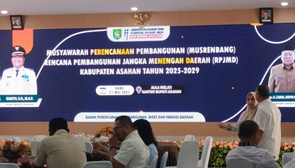 Dinas PMD Kab. Asahan melalui Sekretaris Dinas Arifin Siregar, SE, MM mengikuti Musrenbang RPJMD Kab. Asahan tahun 2025 – 2029 di Aula Melati kantor Bupati Asahan pada hari Rabu, (21 Mei 2025).