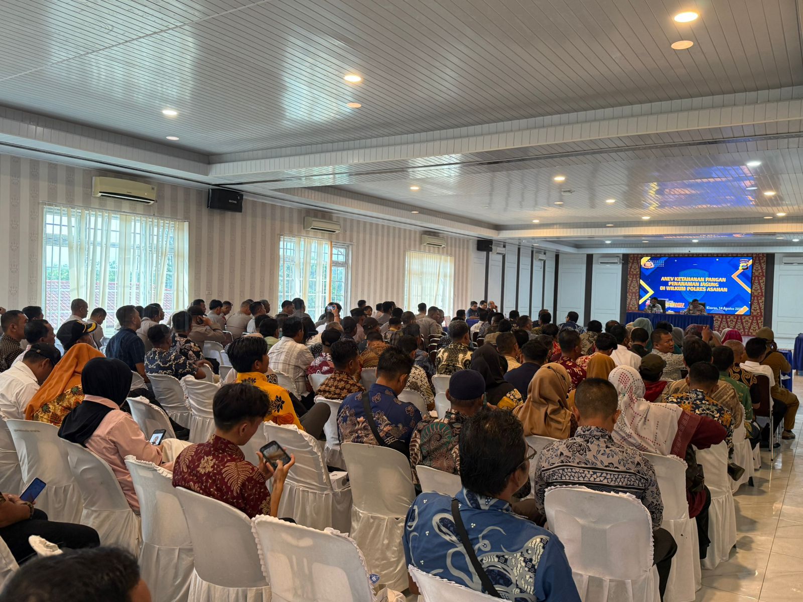 Asahan, 14 Agustus 2025 – Dinas Pemberdayaan Masyarakat dan Desa (PMD) Kabupaten Asahan turut hadir dalam acara Sosialisasi Ketahanan Pangan dengan tema “1 Desa 1 Hektar” dan Anev (Analisis dan Evaluasi) Penanaman Jagung yang diadakan pada, Kamis, 14 Agustus 2025, di Wilayah Hukum (Wilkum) Polres Asahan. Acara yang digelar oleh Pemerintah Kabupaten Asahan bekerja sama dengan Polres Asahan ini bertujuan untuk memperkuat ketahanan pangan di tingkat desa melalui program penanaman jagung sebagai salah satu komoditas unggulan.
