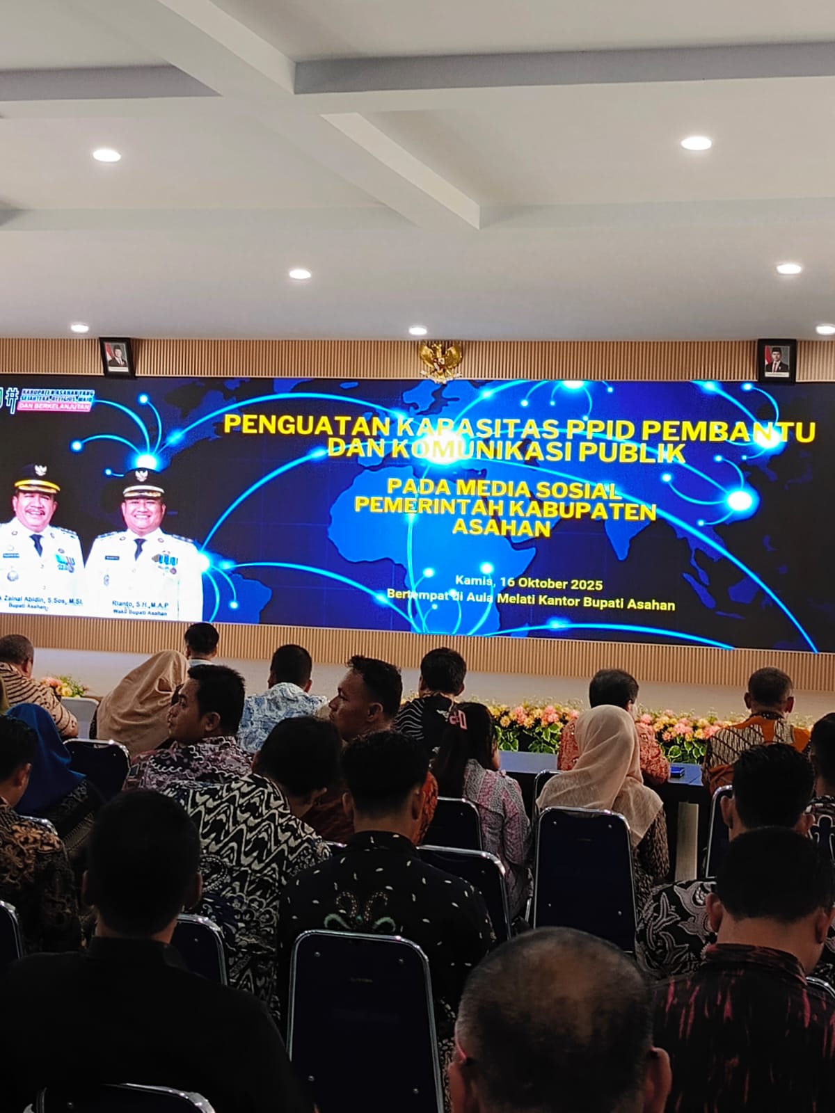 Dinas Komunikasi dan Informatika (Diskominfo) Kabupaten Asahan menyelenggarakan kegiatan Penguatan Kapasitas PPID Pembantu dan Komunikasi Publik pada Kamis (16/10/2025), bertempat di Aula Melati, Kantor Bupati Asahan. Kegiatan ini diikuti oleh seluruh Pejabat Pengelola Informasi dan Dokumentasi (PPID) Pembantu dari Organisasi Perangkat Daerah (OPD), kecamatan, serta puskesmas se-Kabupaten Asahan.